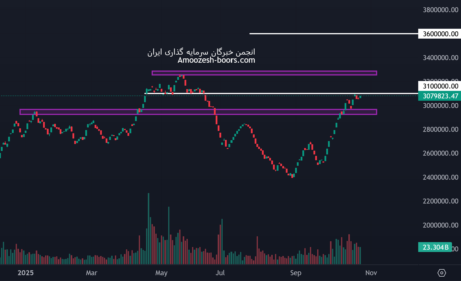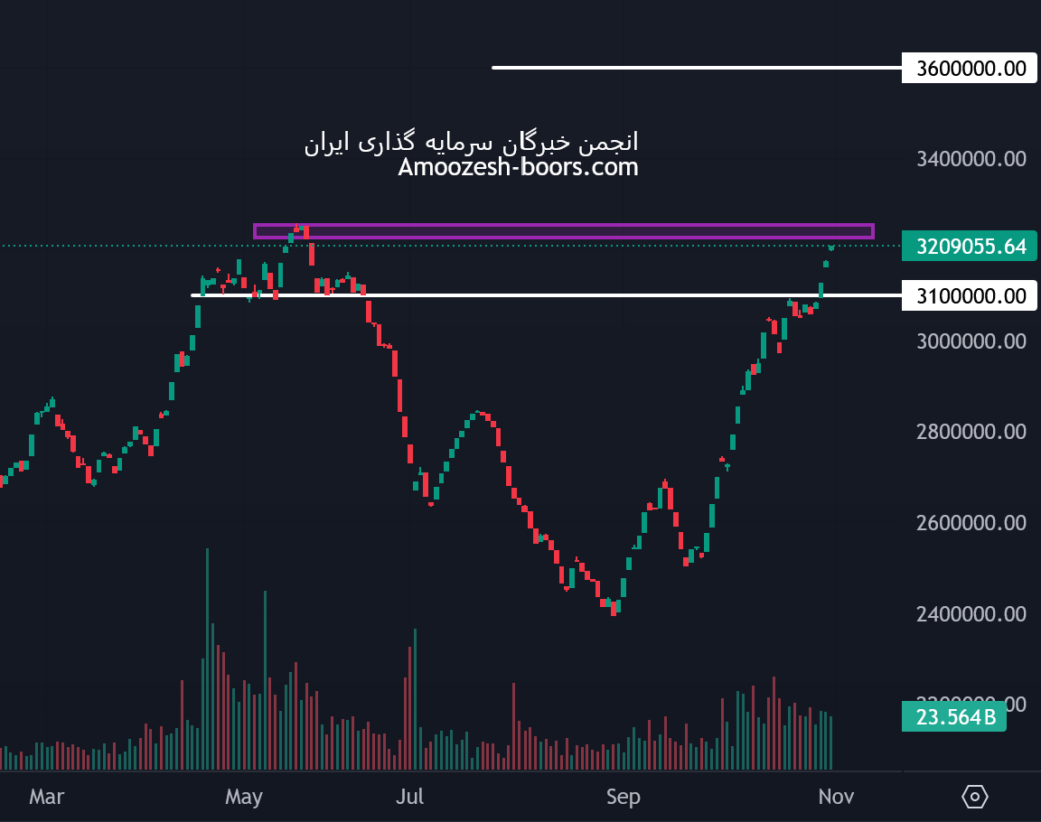 از منظر تکنیکالی شاخص کل بعد از اصلاح پر فشاری که تجربه کرده و از محدوده حمایتی 2.400.000 واحد برگشته و به مقاومت 2.700.000 واحد رسیده، در صورت عبور از این محدوده، مقاومت بعدی 2.900.000 واحد خواهد بود، در صورت ورود به فاز اصلاحی، اولین مقاومت شاخص 2.400.000 واحد در نظر گرفته خواهد شد.