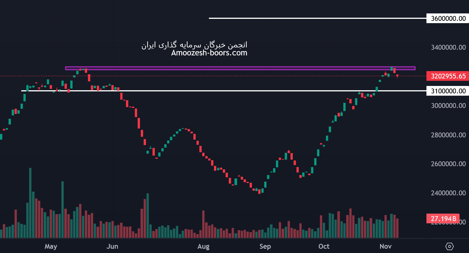 از منظر تکنیکالی شاخص کل به محدوده مقاومتی سقف تاریخی رسیده، 3.300.000 و 3.600.000 واحد مقاومت های بعدی خواهد شد، اولین حمایت نیز 3.100.000 واحد خواهد بود.