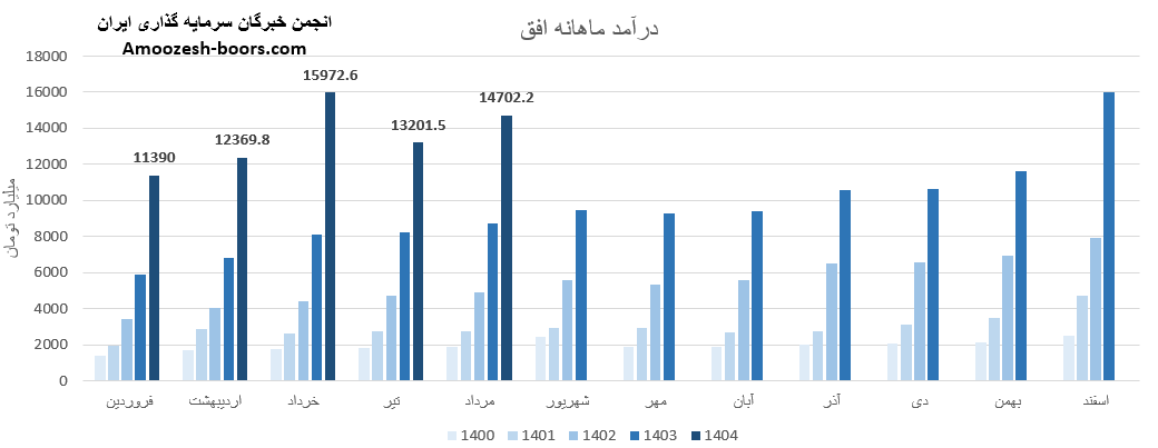 سهام افق از ابتدای سال مالی تا پایان فروردین 1404، مجموع درآمد ثبتشده شرکت به 11390 میلیارد تومان رسیده که نسبت به مدت مشابه سال گذشته 94 درصد افزایش داشته، و در همین حال 10 درصد از کل درآمد سال گذشته تحقق یافته است؛ موضوعی که میتواند نشانهای مثبت برای رشد سودآوری در ادامه سال باشد.
