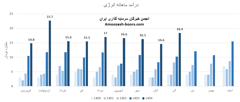 سهام انرژی از ابتدای سال مالی تا پایان آذر 1404، به درآمد 152 میلیارد تومان رسیده که نسبت به مدت مشابه سال گذشته 63 درصد رشد داشته، و در همین حال 16% بیشتر از کل درآمد سال گذشته تحقق یافته است.