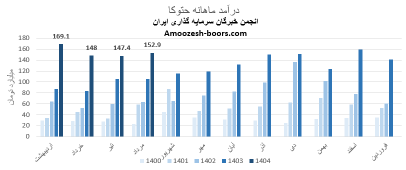 سهام حتوکا از ابتدای سال مالی تا پایان مرداد 1404، مجموع درآمد ثبت شده شرکت به 617 میلیارد تومان رسیده که نسبت به مدت مشابه سال گذشته 62 درصد رشد داشته، و در همین حال 46 درصد از کل درآمد سال گذشته تحقق یافته است.