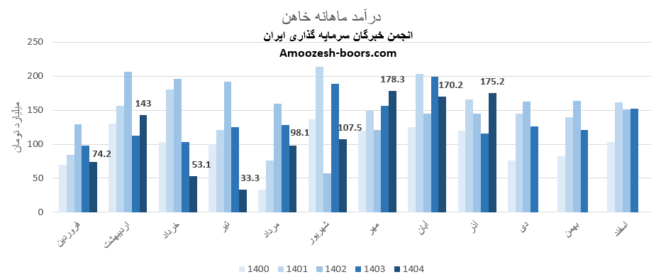 سهام خاهن از ابتدای سال مالی تا پایان مرداد 1404، مجموع درآمد ثبت شده شرکت به 402 میلیارد تومان رسیده که نسبت به مدت مشابه سال گذشته 29 درصد افت داشته، و در همین حال 25 درصد از کل درآمد سال گذشته تحقق یافته است.