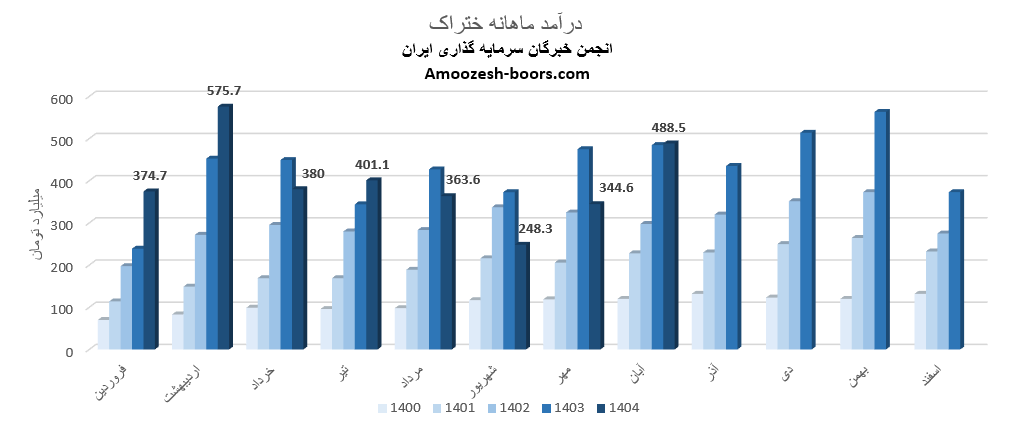فروش ماهانه در مهرماه 1404 حدود 344.6 میلیارد تومان ثبت شده است.