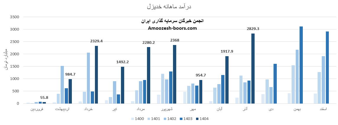 طبق گزارش های منتشرشده در کدال، مجموع درآمد عملیاتی خدیزل تا پایان آبان 1404 به 12382.9 میلیارد تومان رسیده است.