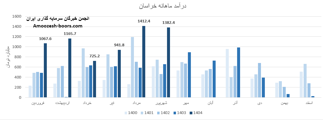 بر اساس گزارش فعالیت سهم خراسان که در کدال منتشر شده، این شرکت در این ماه توانسته به درآمد 1382 میلیارد تومان دست یابد، این عدد در مقایسه با ماه گذشته تغییر 2%-، در مقایسه با متوسط ماهانه 30%+ و در مقایسه با مدت مشابه 110%+ داشته است.