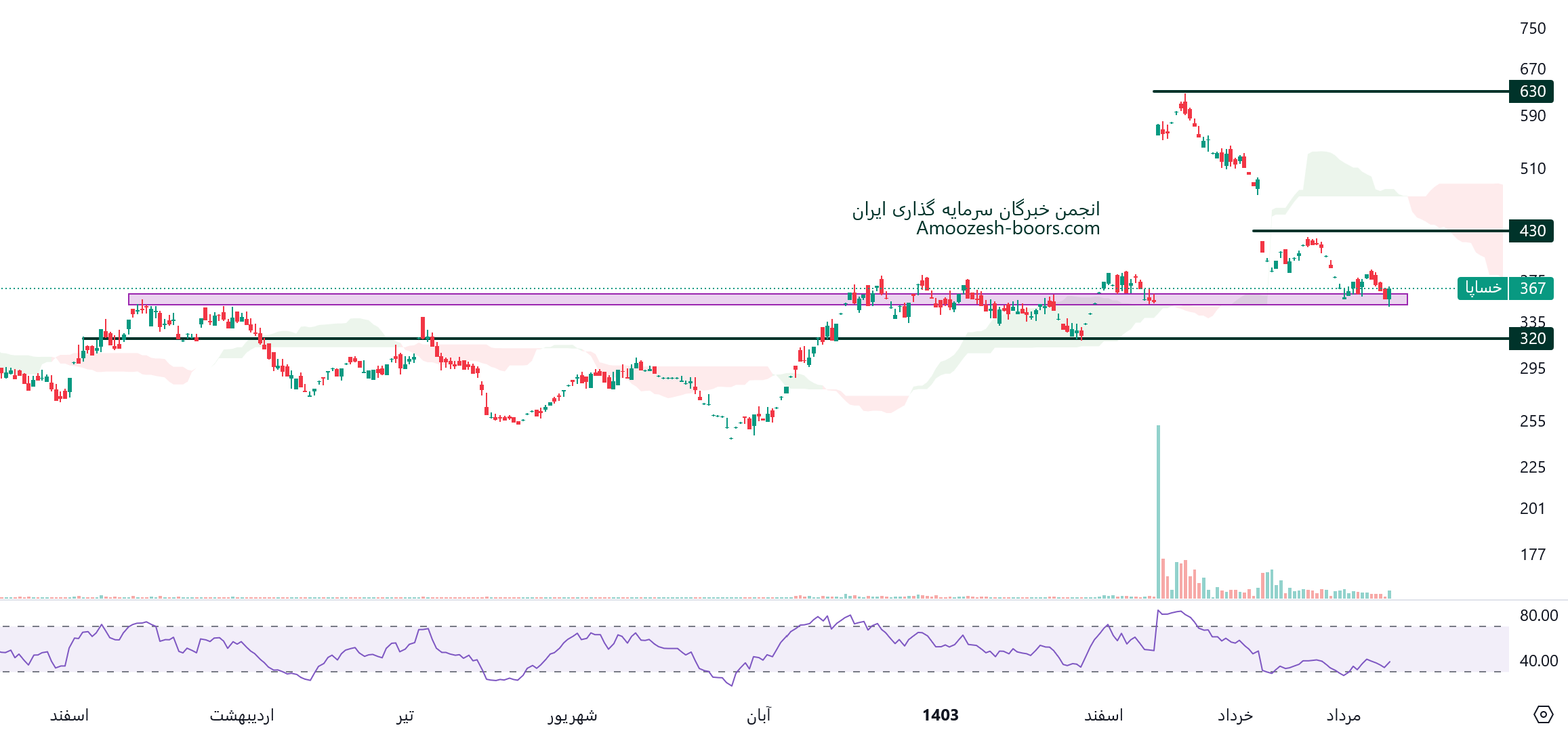 در این تحلیل به بررسی سهم خساپا با استفاده نقاط مهم حمایتی و مقاومتی میپردازیم.