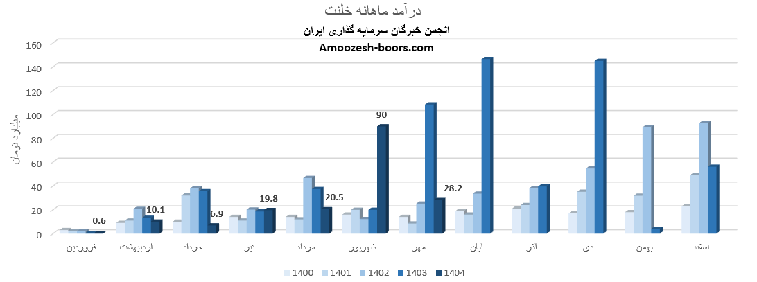 فروش ماهانه در مهرماه 1404 حدود 28.2 میلیارد تومان ثبت شده است.