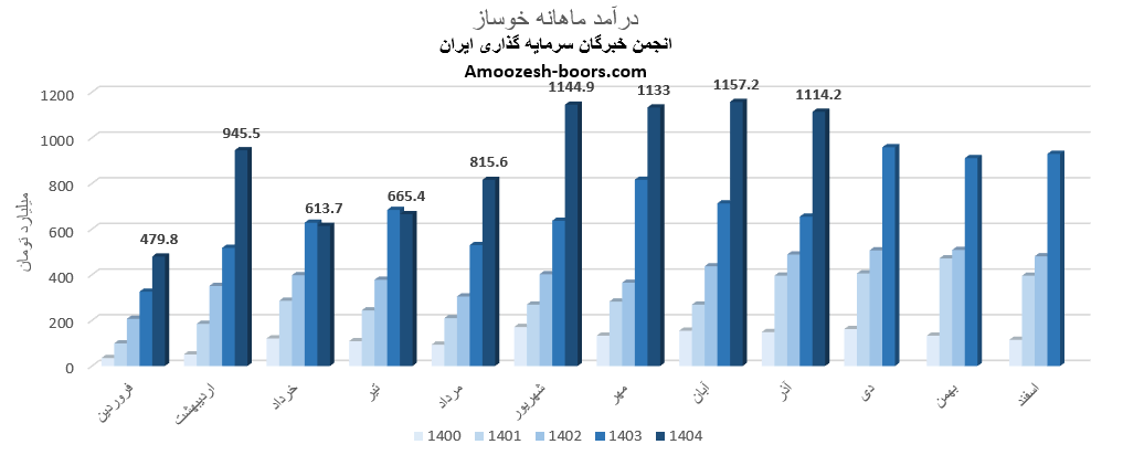 طبق گزارش های منتشرشده در کدال، مجموع درآمد عملیاتی خوساز تا پایان مهر 1404 به 5798 میلیارد تومان رسیده است.