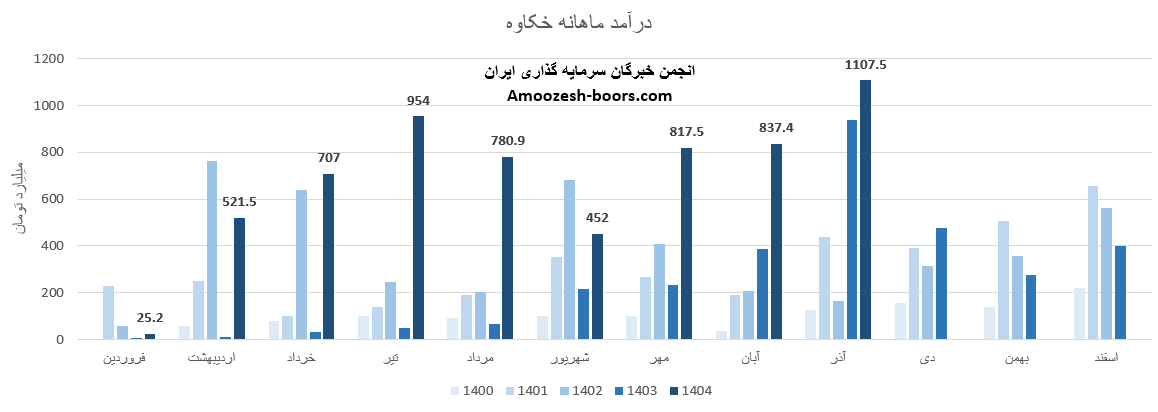 طبق گزارش های منتشرشده در کدال، مجموع درآمد عملیاتی خکاوه تا پایان آبان 1404 به 5095 میلیارد تومان رسیده است.