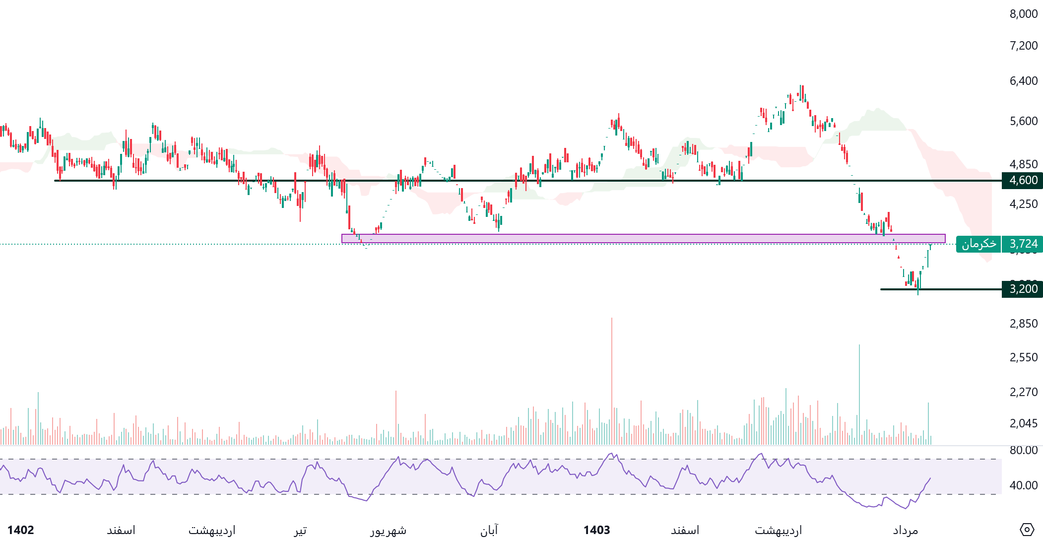 در این تحلیل به بررسی سهم خکرمان با استفاده نقاط مهم حمایتی و مقاومتی میپردازیم.