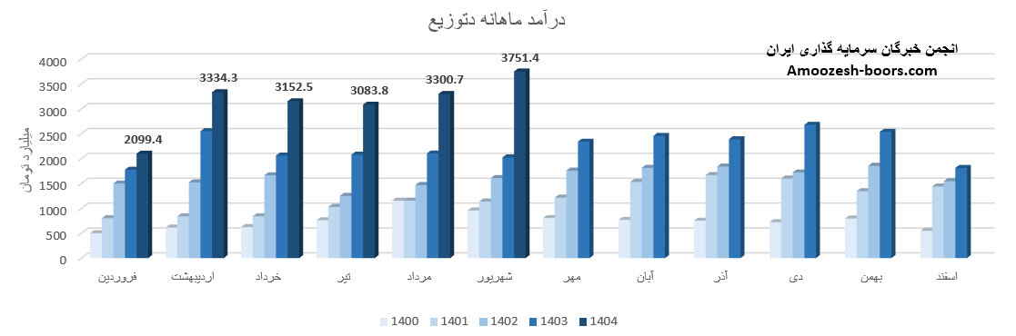سهام دتوزیع از ابتدای سال مالی تا پایان مرداد 1404، مجموع درآمد ثبت شده شرکت به 14971 میلیارد تومان رسیده که نسبت به مدت مشابه سال گذشته 42 درصد رشد داشته، و در همین حال 60 درصد از کل درآمد سال گذشته تحقق یافته است.