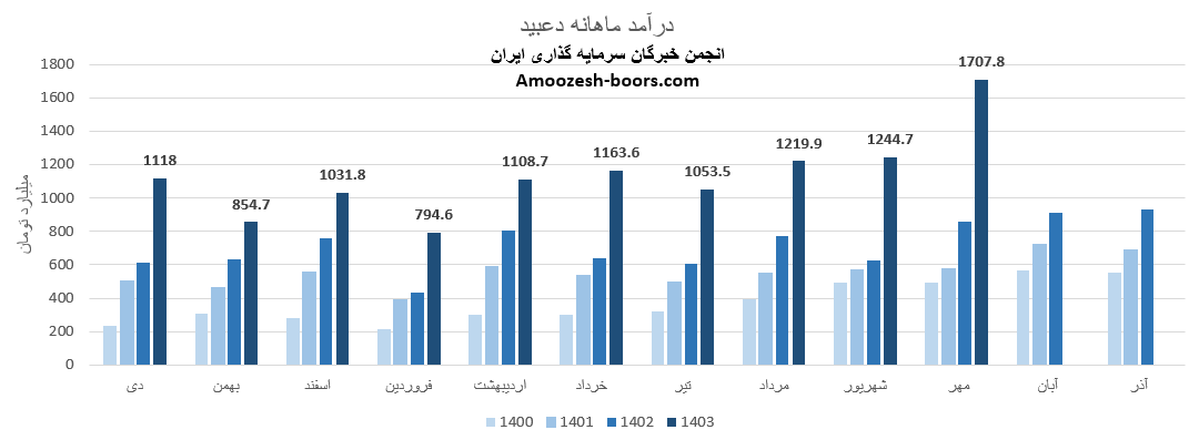 فروش ماهانه در مهرماه 1404 حدود 1707.8 میلیارد تومان ثبت شده است.