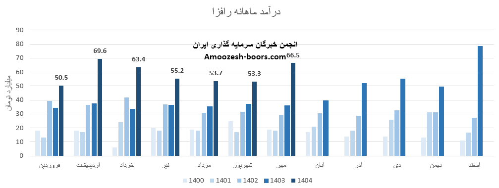سهام رافزا از ابتدای سال مالی تا پایان مرداد 1404، مجموع درآمد ثبت شده شرکت به 292 میلیارد تومان رسیده که نسبت به مدت مشابه سال گذشته 65 درصد رشد داشته، و در همین حال 56 درصد از کل درآمد سال گذشته تحقق یافته است.