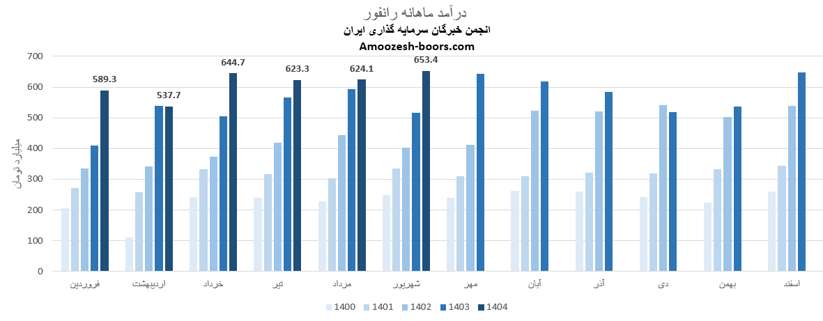 سهام رانفور از ابتدای سال مالی تا پایان مرداد 1404، مجموع درآمد ثبت شده شرکت به 3019 میلیارد تومان رسیده که نسبت به مدت مشابه سال گذشته 15 درصد رشد داشته، و در همین حال 45 درصد از کل درآمد سال گذشته تحقق یافته است.