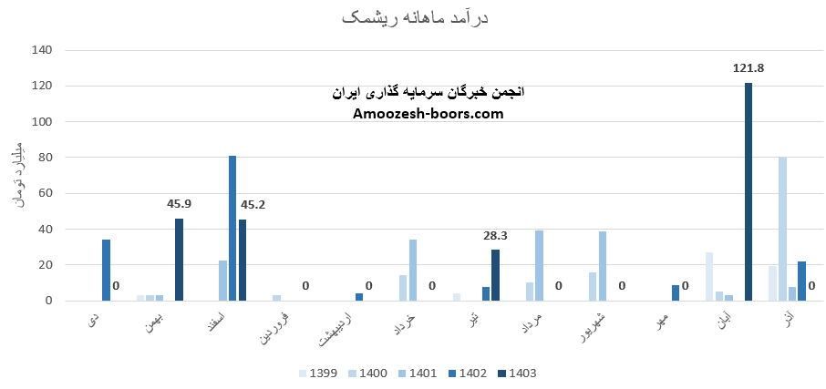 سهام ریشمک از ابتدای سال مالی تا پایان آذر 1404، به درآمد 241 میلیارد تومان رسیده که نسبت به مدت مشابه سال گذشته 53 درصد رشد داشته است.