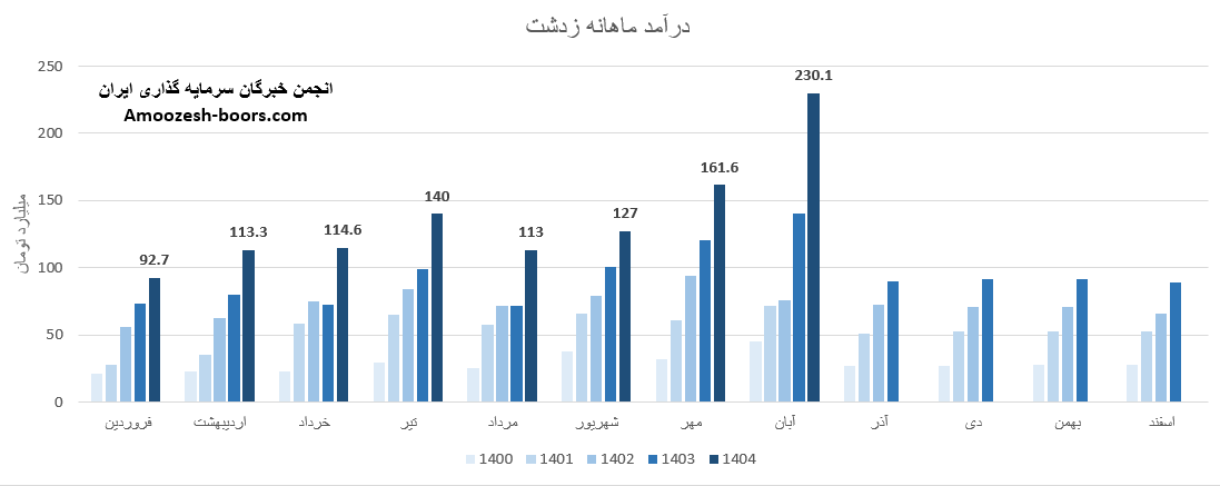 طبق گزارش های منتشرشده در کدال، مجموع درآمد عملیاتی زدشت تا پایان مهر 1404 به 1092 میلیارد تومان رسیده است.