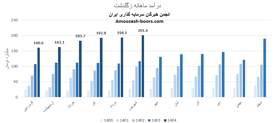 سهام زگلدشت از ابتدای سال مالی تا پایان مرداد 1404، مجموع درآمد ثبت شده شرکت به 894 میلیارد تومان رسیده که نسبت به مدت مشابه سال گذشته 62 درصد رشد داشته، و در همین حال 58 درصد از کل درآمد سال گذشته تحقق یافته است.