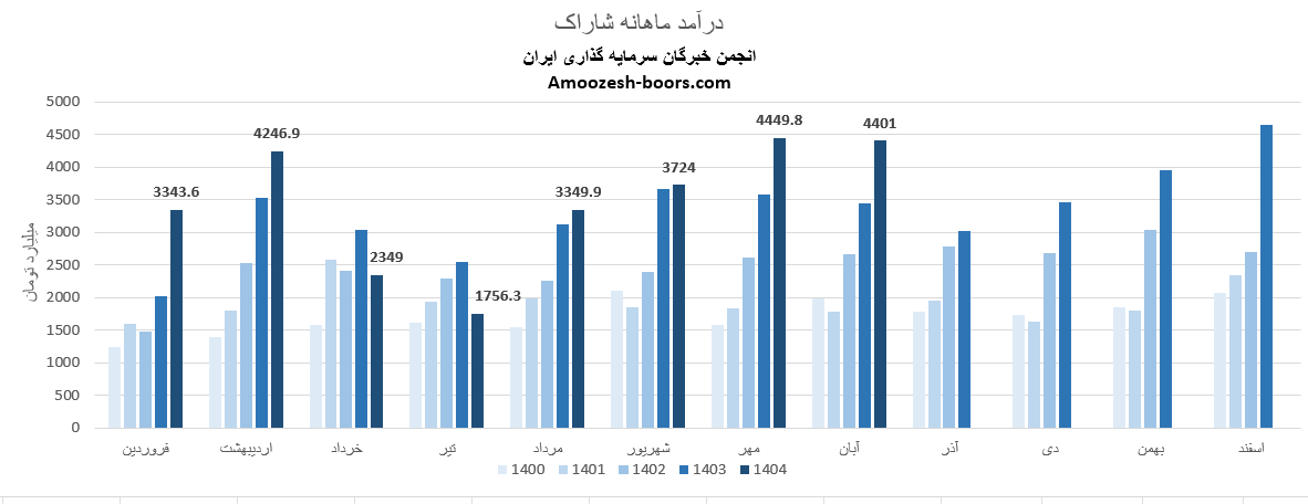 فروش ماهانه در مهرماه 1404 حدود 4449.8 میلیارد تومان ثبت شده است.