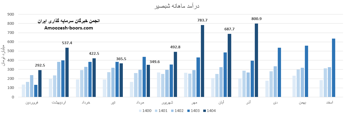 سهام شبصیر از ابتدای سال مالی تا پایان آذر 1404، به درآمد 4733 میلیارد تومان رسیده که نسبت به مدت مشابه سال گذشته 39 درصد رشد داشته، و در همین حال 92% از کل درآمد سال گذشته تحقق یافته است.
