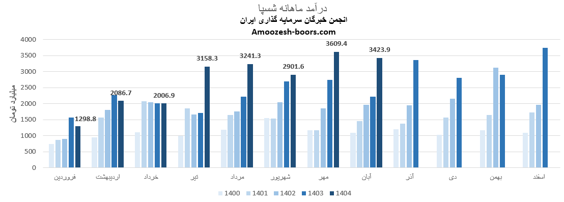 طبق گزارش های منتشرشده در کدال، مجموع درآمد عملیاتی شسپا تا پایان آبان 1404 به 21727 میلیارد تومان رسیده است.