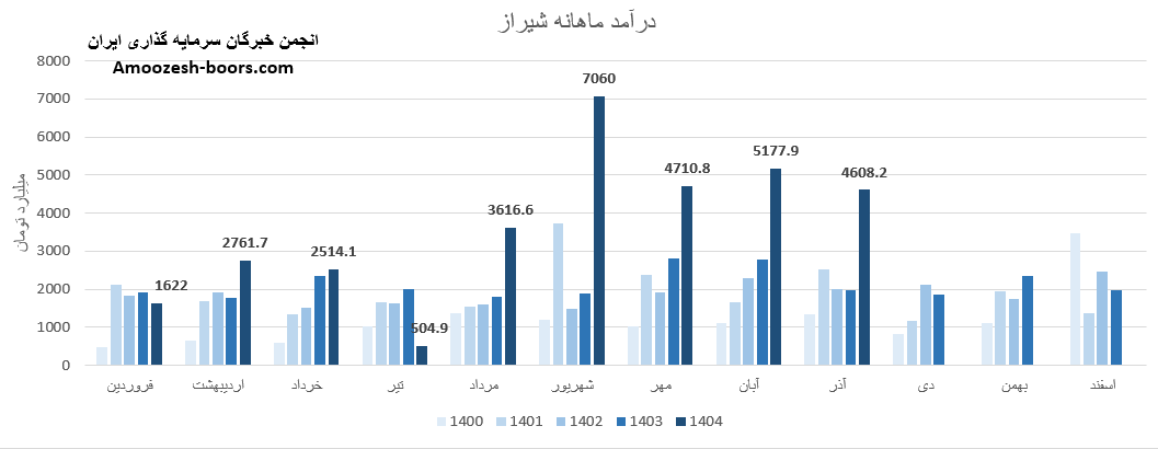 سهام شیراز از ابتدای سال مالی تا پایان آذر 1404، به درآمد 32576 میلیارد تومان رسیده که نسبت به مدت مشابه سال گذشته 69 درصد رشد داشته، و در همین حال 28% بیشتر از کل درآمد سال گذشته تحقق یافته است.