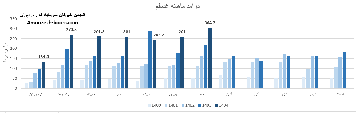 فروش ماهانه در مهرماه 1404 حدود 304.7 میلیارد تومان ثبت شده است.