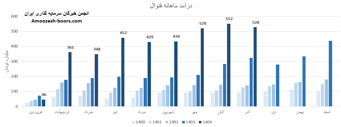 سهام فنوال از ابتدای سال مالی تا پایان آذر 1404، به درآمد 3676 میلیارد تومان رسیده که نسبت به مدت مشابه سال گذشته 100 درصد رشد داشته، و در همین حال 27% بیشتر از کل درآمد سال گذشته تحقق یافته است.