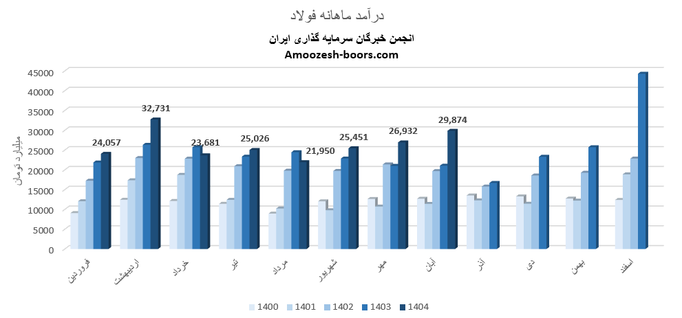 طبق گزارش های منتشرشده در کدال، مجموع درآمد عملیاتی فولاد تا پایان مهر 1404 به 179828 میلیارد تومان رسیده است.
