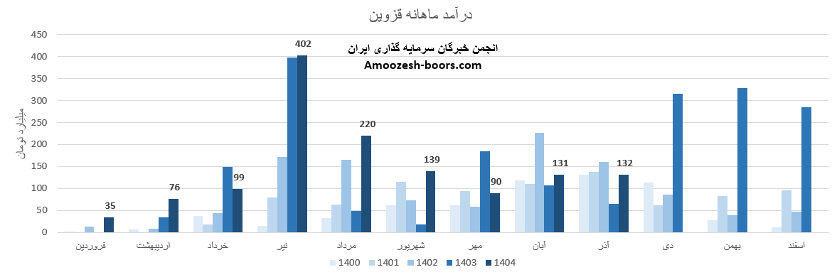 بر اساس صورت مالی و عملکرد ماهانه سهام قزوین که در کدال منتشر شده، این شرکت در این ماه توانسته به درآمد 220 میلیارد تومان دست یابد، این عدد در مقایسه با ماه گذشته تغییر 45%-، در مقایسه با متوسط ماهانه 44%+ و در مقایسه با مدت مشابه 355%+ داشته است.