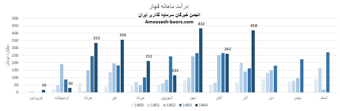 بر اساس صورت مالی و عملکرد ماهانه سهام قچار که در کدال منتشر شده، این شرکت در این ماه توانسته به درآمد 212 میلیارد تومان دست یابد، این عدد در مقایسه با ماه گذشته تغییر 40%-، در مقایسه با متوسط ماهانه 115%+ و در مقایسه با مدت مشابه 111%+ داشته است.