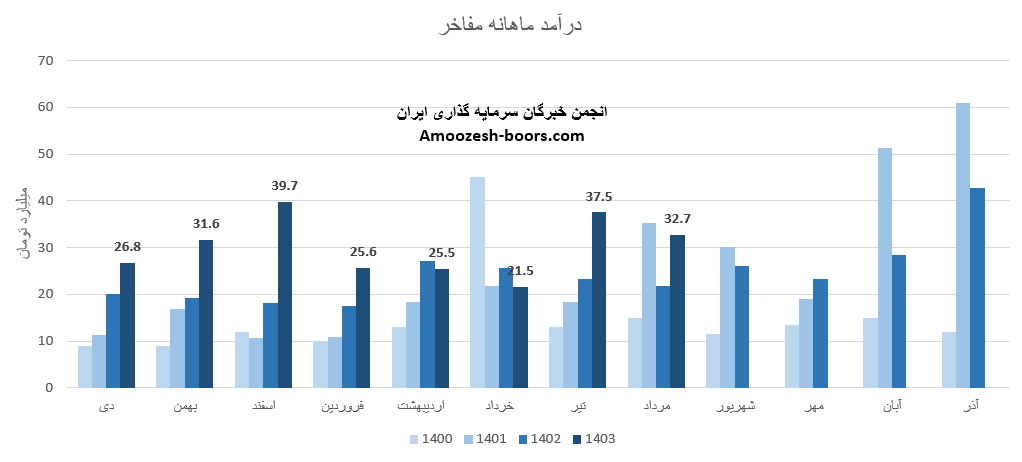 بر اساس صورت مالی و عملکرد ماهانه سهام مفاخر که در  کدال منتشر شده،  این شرکت در این ماه توانسته به درآمد 32.7 میلیارد تومان دست یابد، این عدد در مقایسه با ماه گذشته تغییر 6%-، در مقایسه با متوسط ماهانه 9%+ و در مقایسه با مدت مشابه 50%+ داشته است.