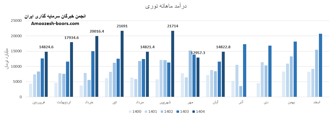 طبق گزارش های منتشرشده در کدال، مجموع درآمد عملیاتی نوری تا پایان آبان 1404 به 138782 میلیارد تومان رسیده است.