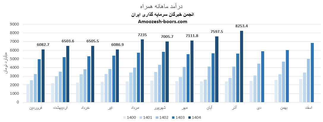 طبق گزارش های منتشرشده در کدال، مجموع درآمد عملیاتی همراه تا پایان آبان 1404 به 54129 میلیارد تومان رسیده است.