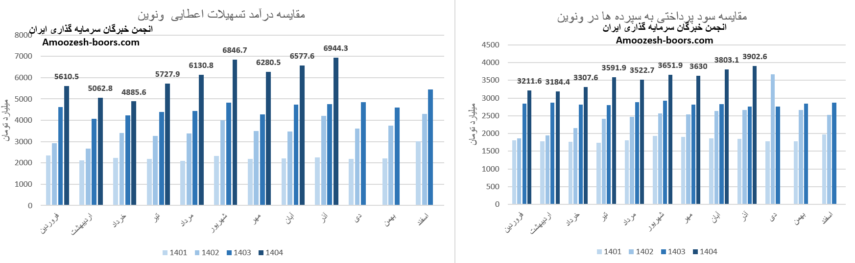 در بخش درآمدها، بانک اقتصاد نوین در آبان ماه ( +5% ) نسبت به ماه گذشته تغییر داشته است.