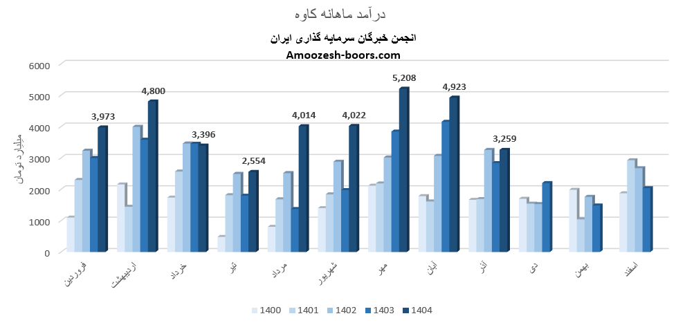 طبق گزارش های منتشرشده در کدال، مجموع درآمد عملیاتی کاوه تا پایان آبان 1404 به 32890 میلیارد تومان رسیده است.