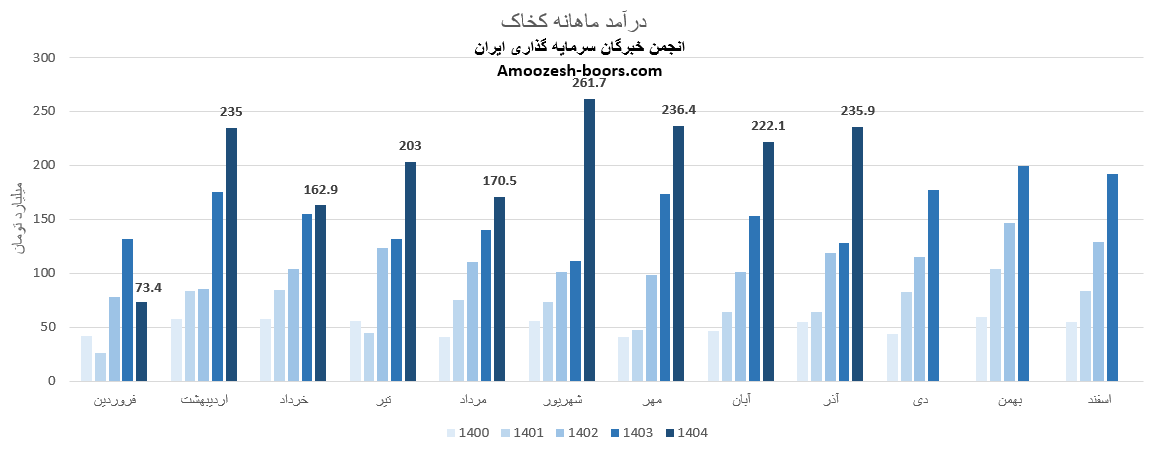 طبق گزارش های منتشرشده در کدال، مجموع درآمد عملیاتی کخاک تا پایان آبان 1404 به 1565 میلیارد تومان رسیده است.