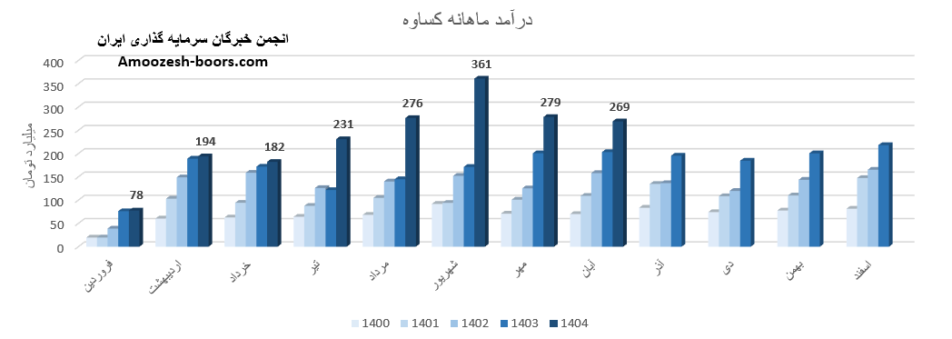 بر اساس صورت مالی و عملکرد ماهانه سهام کساوه که در کدال منتشر شده، این شرکت در این ماه توانسته به درآمد 276 میلیارد تومان دست یابد، این عدد در مقایسه با ماه گذشته تغییر 20%+، در مقایسه با متوسط ماهانه 61%+ و در مقایسه با مدت مشابه 91%+ داشته است.