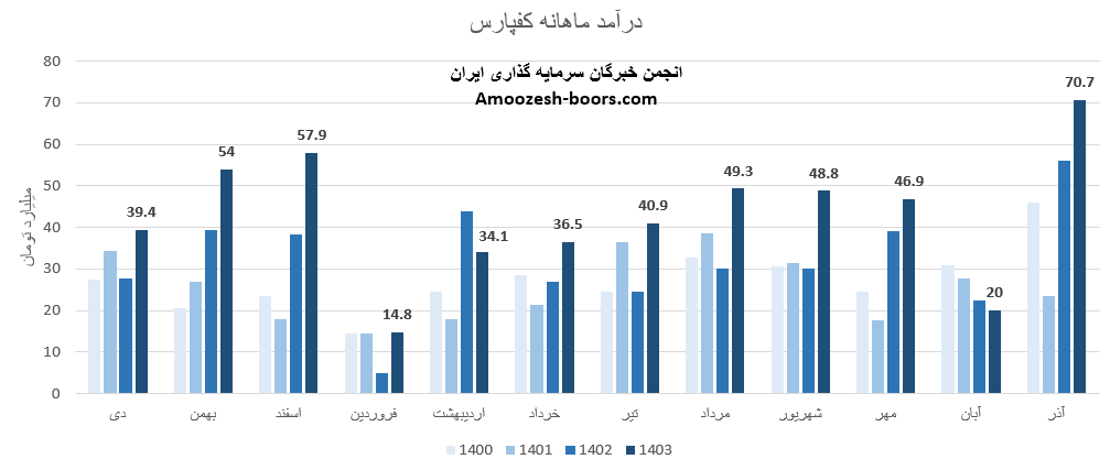 سهام کفپارس از ابتدای سال مالی تا پایان آذر 1404، به درآمد 513 میلیارد تومان رسیده که نسبت به مدت مشابه سال گذشته 34 درصد رشد داشته است.