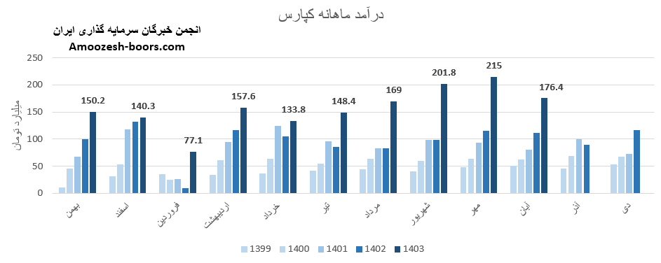 سهام کپارس از ابتدای سال مالی تا پایان شهریور 1404، به درآمد 1178 میلیارد تومان رسیده که نسبت به مدت مشابه سال گذشته 62 درصد رشد داشته، و در همین حال 1 بیشتر درصد از کل درآمد سال گذشته تحقق یافته است.