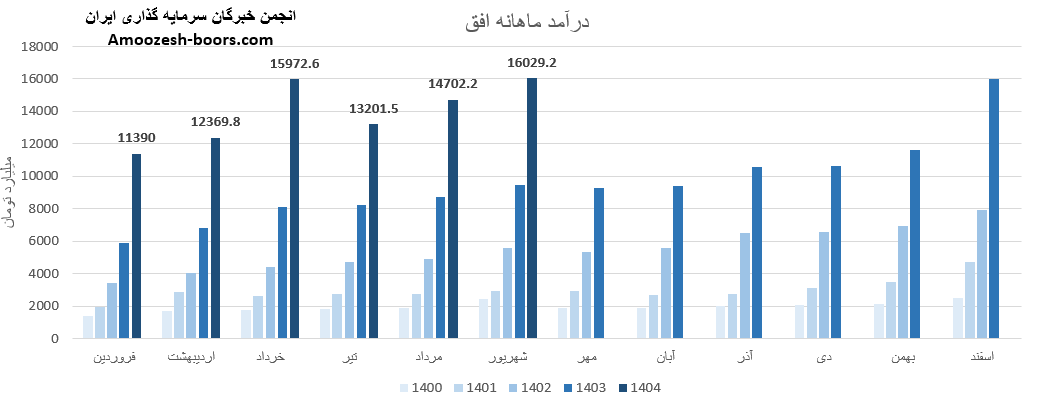بر اساس صورت مالی و عملکرد ماهانه سهام افق که در کدال منتشر شده، این شرکت در این ماه توانسته به درآمد 14702.2 میلیارد تومان دست یابد، این عدد در مقایسه با ماه گذشته تغییر 11%+، در مقایسه با متوسط ماهانه 11%+ و در مقایسه با مدت مشابه 68%+ داشته است.