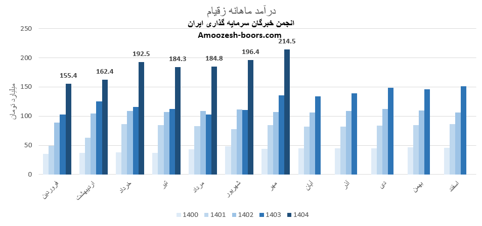 طبق گزارش های منتشرشده در کدال، مجموع درآمد عملیاتی زقیام تا پایان مهر 1404 به 1290 میلیارد تومان رسیده است.