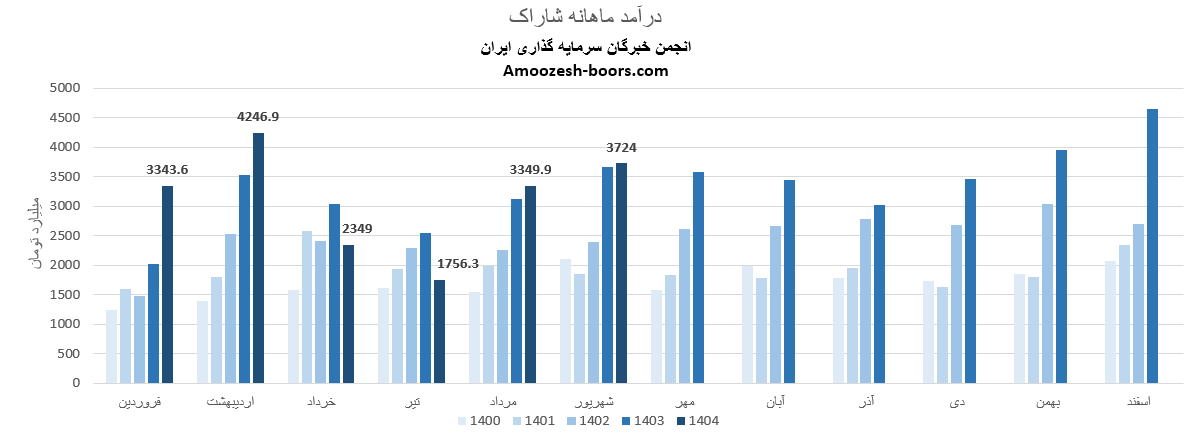 سهام شاراک از ابتدای سال مالی تا پایان مرداد 1404، مجموع درآمد ثبت شده شرکت به 15045 میلیارد تومان رسیده که نسبت به مدت مشابه سال گذشته 6 درصد رشد داشته، و در همین حال 38 درصد از کل درآمد سال گذشته تحقق یافته است.