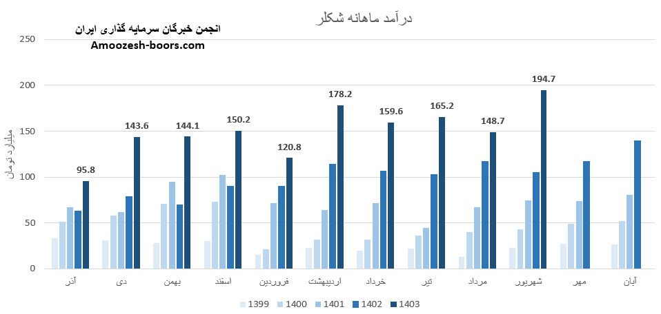سهام شکلر از ابتدای سال مالی تا پایان شهریور 1404، به درآمد 1501 میلیارد تومان رسیده که نسبت به مدت مشابه سال گذشته 60 درصد رشد داشته، و در همین حال 26 بیشتر از درصد از کل درآمد سال گذشته تحقق یافته است.