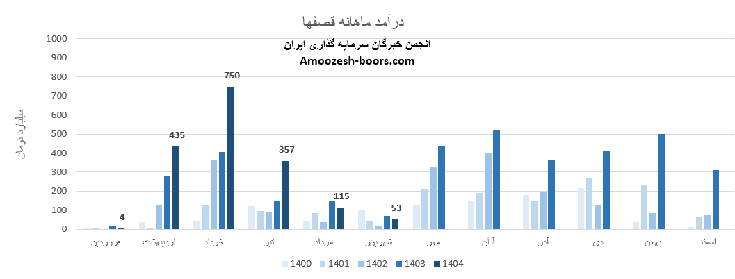 سهام قصفها از ابتدای سال مالی تا پایان مرداد 1404، مجموع درآمد ثبت شده شرکت به 1660 میلیارد تومان رسیده که نسبت به مدت مشابه سال گذشته 66 درصد رشد داشته، و در همین حال 46 درصد از کل درآمد سال گذشته تحقق یافته است.