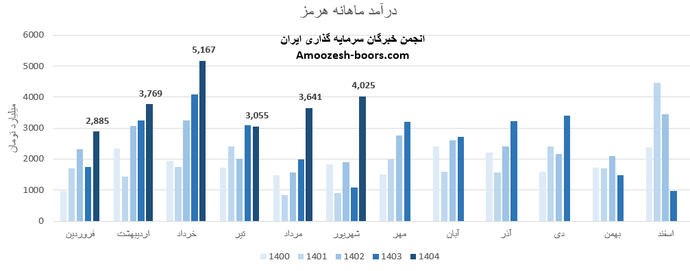 سهام هرمز از ابتدای سال مالی تا پایان مرداد 1404، مجموع درآمد ثبت شده شرکت به 18517 میلیارد تومان رسیده که نسبت به مدت مشابه سال گذشته 31 درصد رشد داشته، و در همین حال 61 درصد از کل درآمد سال گذشته تحقق یافته است.