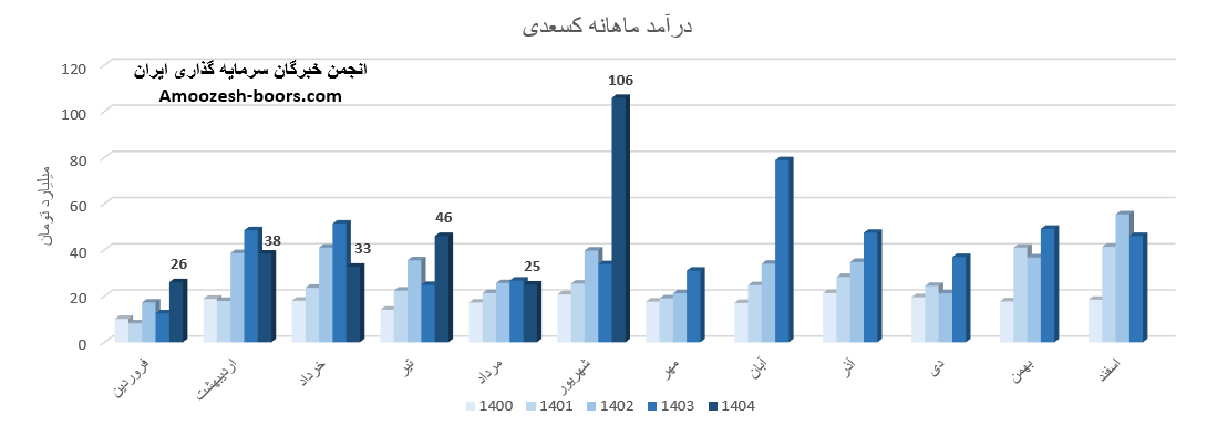 بر اساس گزارش فعالیت سهم کسعدی که در کدال منتشر شده، این شرکت در این ماه توانسته به درآمد 105.8 میلیارد تومان دست یابد، این عدد در مقایسه با ماه گذشته تغییر 323%+، در مقایسه با متوسط ماهانه 132%+ و در مقایسه با مدت مشابه 213%+ داشته است.